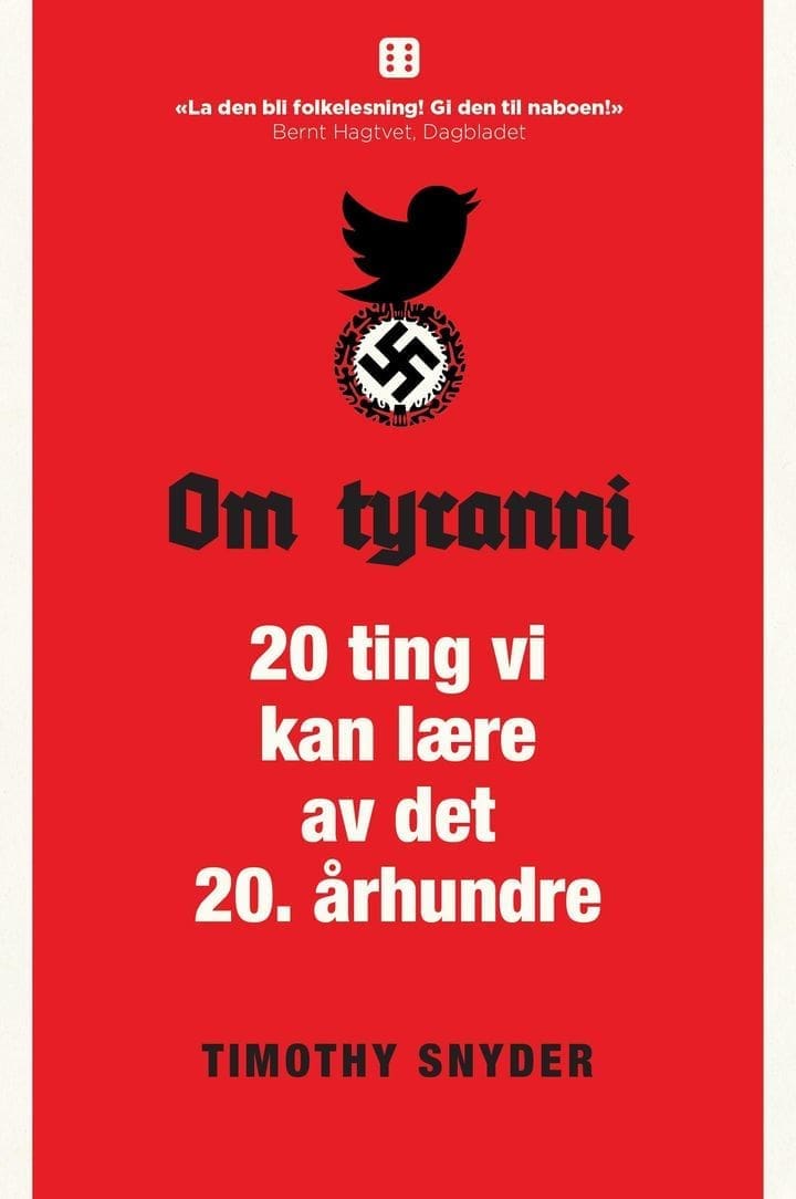Timothy Snyder presenterer 20 ting vi kan lære av det 20. århundre. Boken er basert på en liste han skrev etter presidentvalget i USA, som raskt ble spredt på sosiale medier. Dette er en viktig bok ikke bare for amerikanere, men for oss alle, nå som populistiske og autoritære tendenser er blitt tydeligere både i USA og i Europa. Snyder er professor i historie, og har spesialisert seg på Det tredje riket og Holocaust: «Dagens amerikanere er ikke smartere enn europeerne, deres demokratier ble overgitt til fascisme, nazisme og kommunisme i det 20. århundre. En av USAs fordeler er at de kanskje kan lære av andres erfaringer. Akkurat nå ville være et godt tidspunkt å gjøre det.»